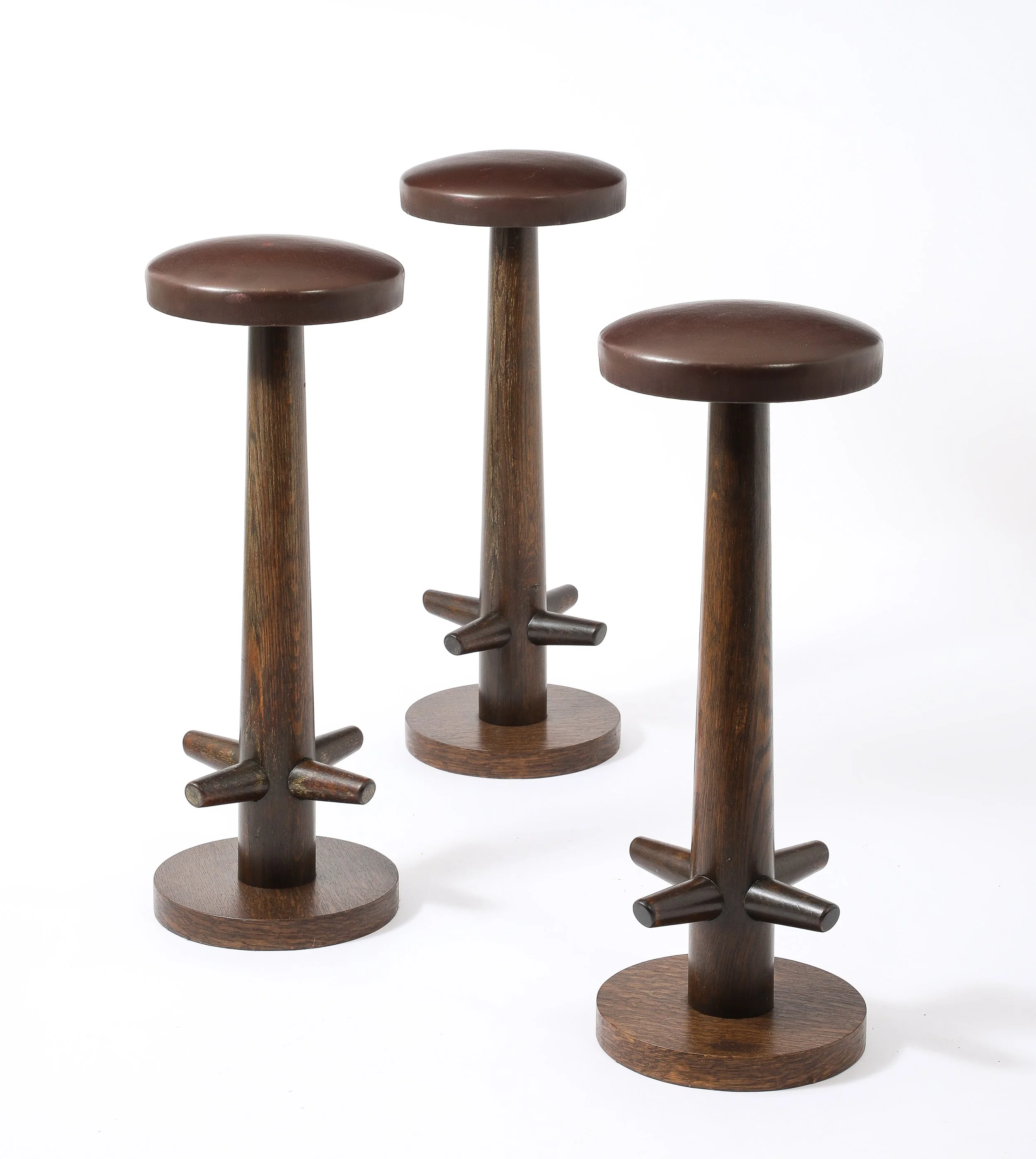Elegant set of three barstools with peg footrests